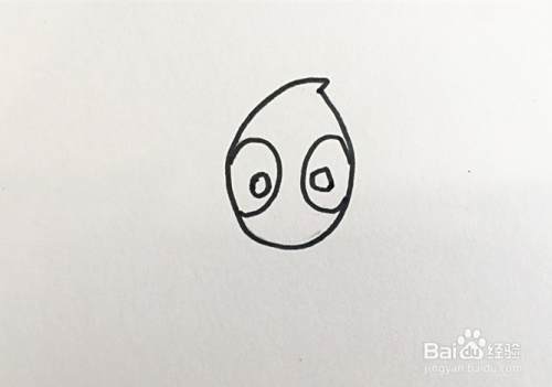 先在纸上画一个椭圆形作为头部,在里面画上两只大眼睛。