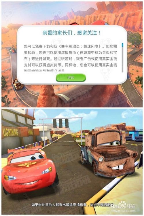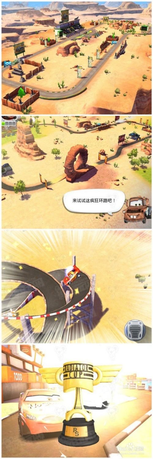 当打开游戏小编看到贴心的“家长贴士”时,总有点智商被压制的感觉,难道这是一款kid手游?如果小编没有看过《赛车总动员》电影的话会果断home的,于是小编果断跳过了这贴心的贴士。进入游戏后还别说,这款游戏的画面还原度还是非常高的,从水箱温泉镇的布景,到每辆赛车的造型,跟电影毫无违和感。