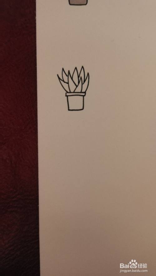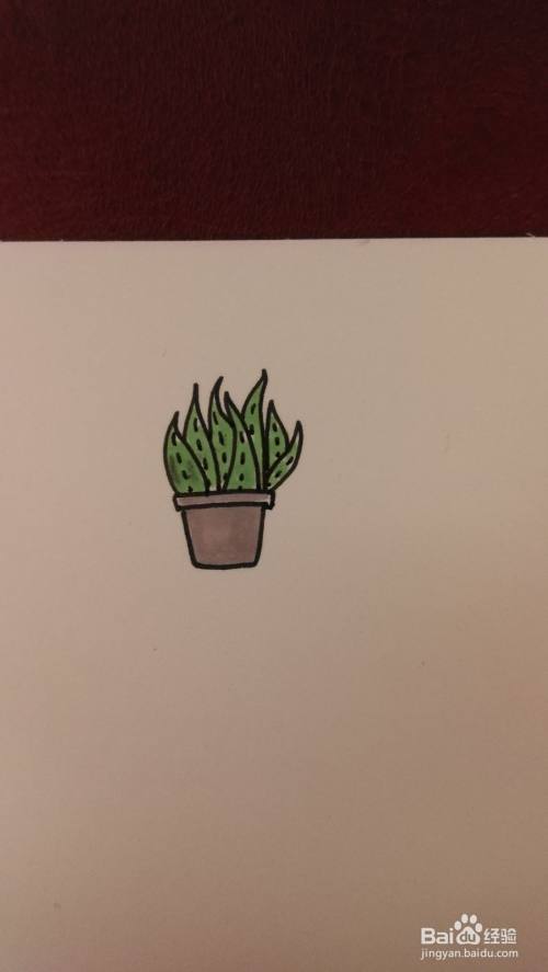 给盆子涂上棕色,给芦荟涂上绿色,就这样,芦荟的简笔画就画好啦