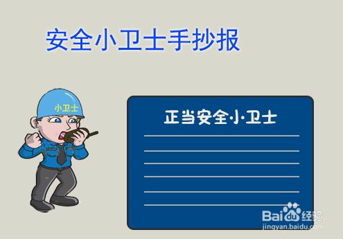 蓝色框里,写上,争当安全小卫士,并打上格子。