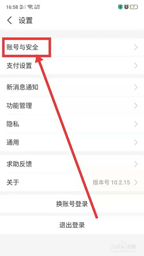 进入设置页面后单号账号与安全标签