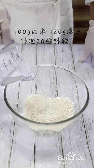 水晶月饼:100克西米,120克温水,浸泡20分钟软化