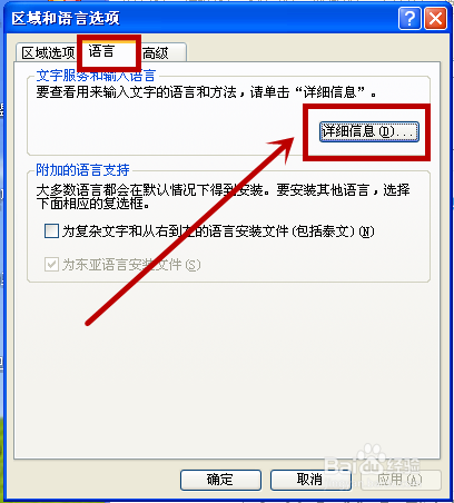 在对话框里单击【语言】然后再单击【详细信息】如图所示。