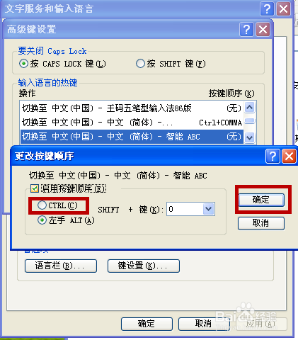 接下来选择【CTRL】这一项,后面的数字系统默认为0,你也可以另选自己喜欢的数字,然后点击【确定】如图所示。