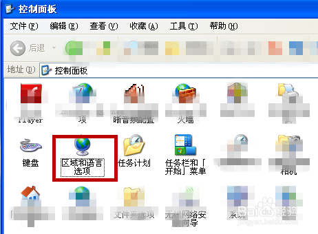 然后在控制面板里找到【区域和语言选项】并单击打开,如图所示。