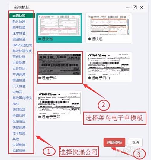 添加模板:点击软件顶部模板管理-快递单模板-添加新模板(如软件订购前,店铺已正常开通菜鸟电子单服务,软件订购后打开使用,模板也是自动添加的,可以省略手动添加这步)