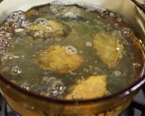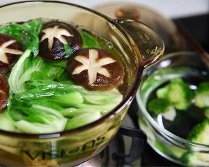 汆烫油菜30秒,和香菇一起捞至冷水中浸泡备用