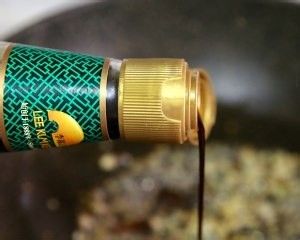 加入蒸鱼豉油、一汤勺料酒和少量白糖,翻炒均匀,加入小半碗开水