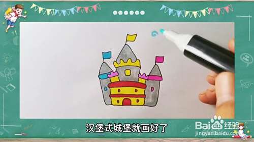 然后城堡涂上颜色,汉堡式城堡就画好了。