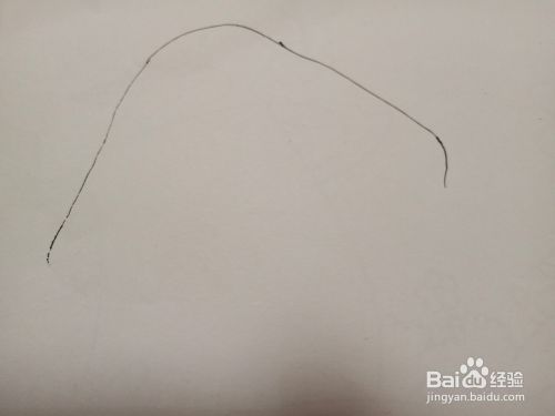 第一步,我们先画蘑菇的菌盖,形似撑开的一把伞,画法很简单,就用一条向上凸起的弧线表示,如下图所示。