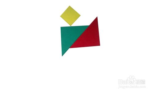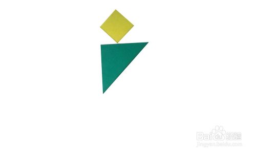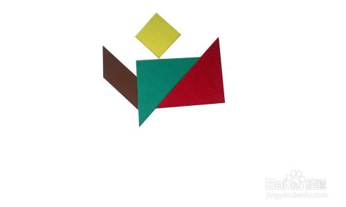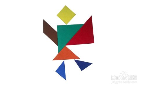 用另一个最小的三角形摆另外一侧的腿脚部。好了,一个跳舞的小人摆好了,大家也快摆摆看吧,很有趣哟。