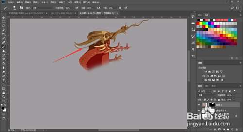 开启Photoshop,使用画笔工具,绘制出盘龙柱的柱头和龙头。