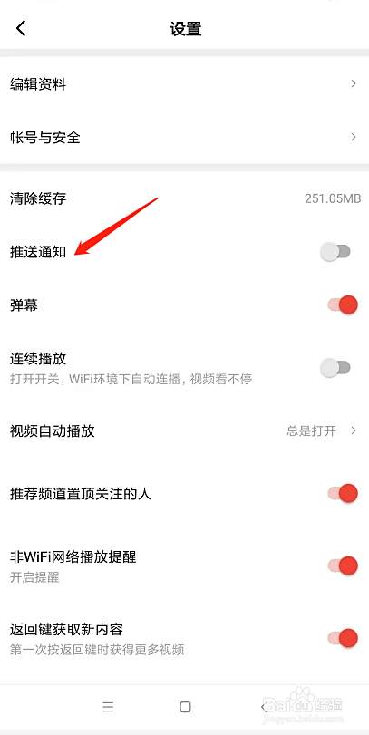 点击关闭,关闭后西瓜视频就不会再主动推送消息了