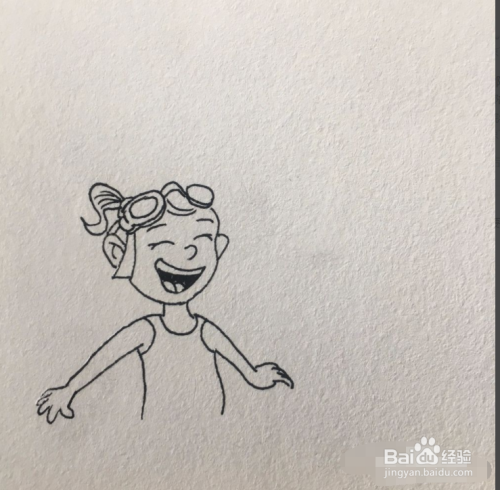 女孩因为大笑而眯着眼睛,所以眼睛画成一条弯弯的弧线即可,嘴巴可以画大一些,这样笑起来更有感染力。