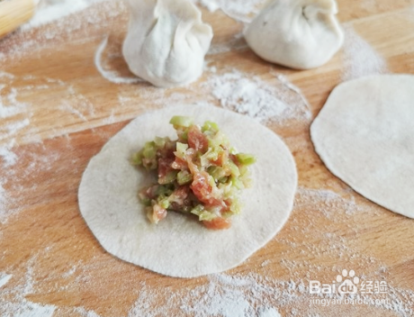 面粉中分次少许加水,揉成面团,盖上保鲜膜松弛好,整理成饺子皮,放入馅料将其按照个人的喜好捏好,按照这个方法依次做好所有的;