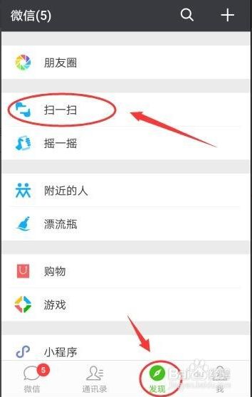 第一种,使用手机扫描商家二微码付款时,点击打开微信右下角里的“发现”,在列表界面有一个“扫一扫”选项,点击打开“扫一扫”。