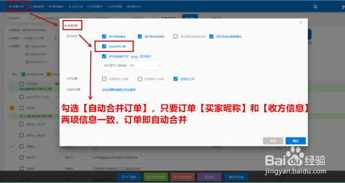 点击【批量打印】--【高级设置】中,将【自动合并订单】勾选上,要是遇到下单的顾客收件地址和联系人相同就会自动合并订单了。