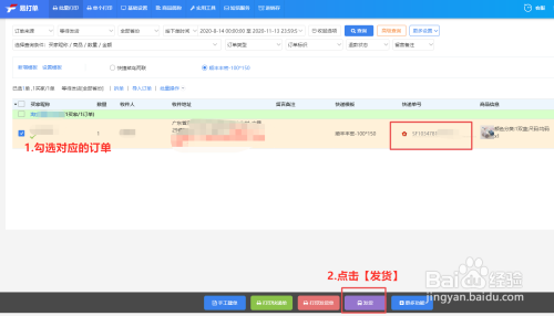 点击【批量打印】,选择对应的快递模板,勾线对于的订单就可以点击【发货】了。