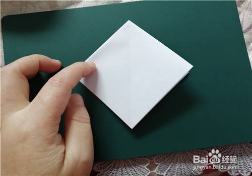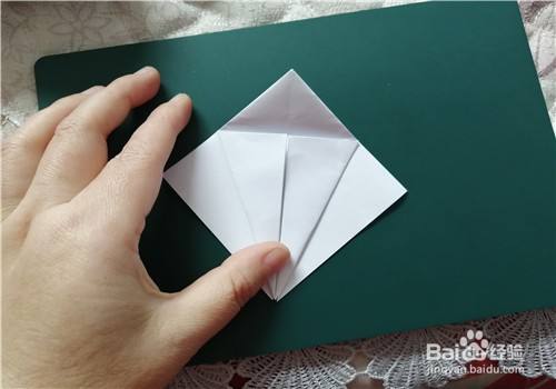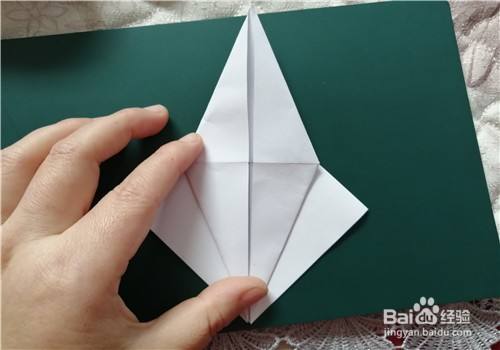 把彩纸回口向下,把两侧的边向内折,如图一。然后把折痕打开,把角向上拉,如图二。