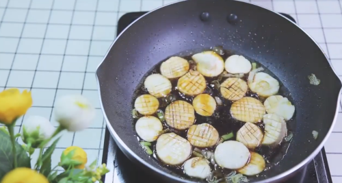 放杏鲍菇翻炒。