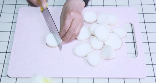杏鲍菇洗净切薄片。