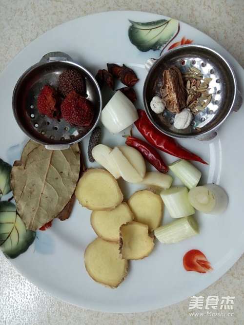 6加入盘中的调料继续翻炒出香味。(小茴香、丁香、山楂放调料盒里)。
