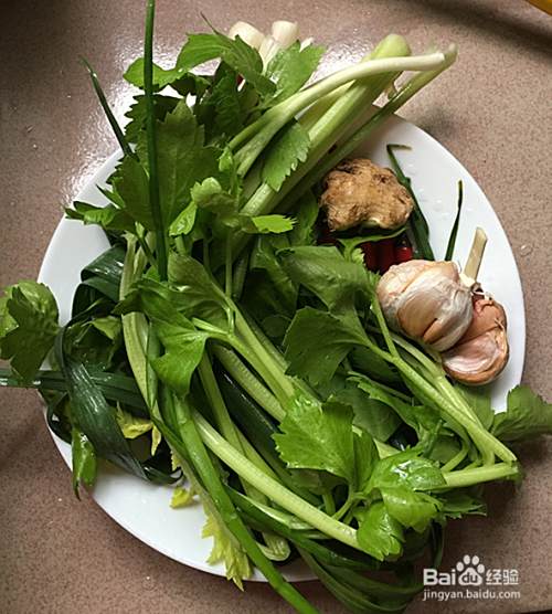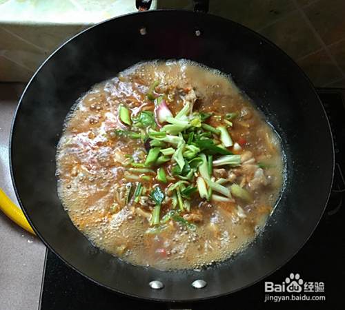 下芹菜,香葱段。