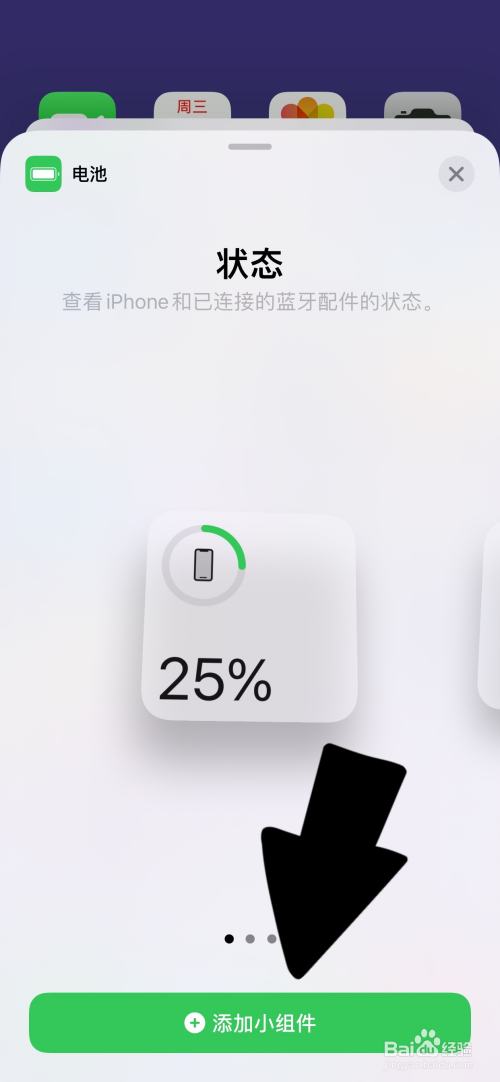 下滑小组件列表找到电池小组件。