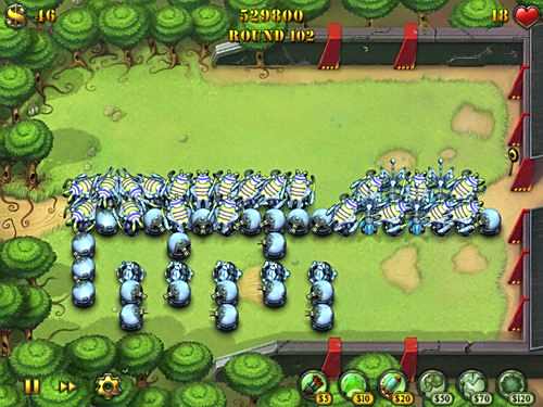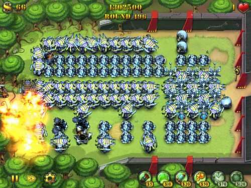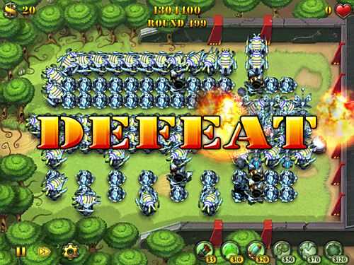 再说说升级,每一次升级炮塔的战斗力是翻倍的,所以只要你的炮弹能够照顾到所有敌人时就不要忙着建新武器了,赶紧先升级吧。按照上面说到的战略思想,用这些武器形成对空中武器的最大伤害不用多说,一定是入口一边多安置炮弹塔加胶水塔消灭大波部队,在出口一边安排电塔加胶水塔消灭残余单位。在这个阵型的基础上通过拆建机枪塔使地面部队来回往返,在空中部队通过中轴线时所有的战斗力都发挥出来,这样就成就了499回合的战绩。玩这个模式还得有点耐心,我就是一局玩了4天的晚上都没完,前期有时走神一不小心放走了几个摩托兵,结果就留下了没到500回合的遗憾,大家可以试试细心一些突破这个纪录。有网友提问困难的无尽模式下如何打开局面,为什么最多坚持20多回合就挺不住了。在困难的难度主要体现在敌人的血值增加的很快,感觉30回合时的敌人血值基本相当于简单时100回合的敌人了。为了尽快建造起高级武器打响正式战斗开始就只有一个字“忍”。我只建造一排机枪塔,通过拆建出口的塔来让敌人迂回,刚开局的飞机一排机枪塔也可以对付了,这样忍到17回合应该就可以攒到120元购买炮弹塔了。