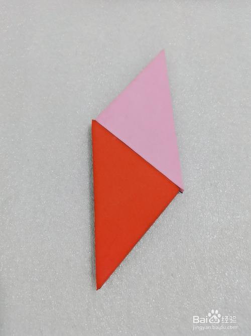 拿出一个粉色大号三角形板放在红色大号板的上面,如图所示。