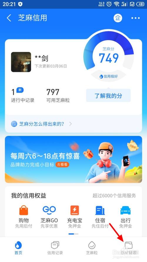 进入芝麻信用界面,我们需要点击进入【信用管理】;
