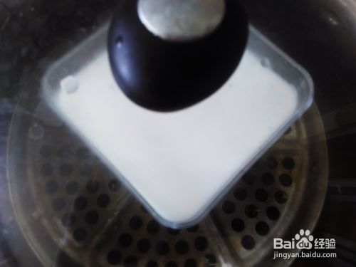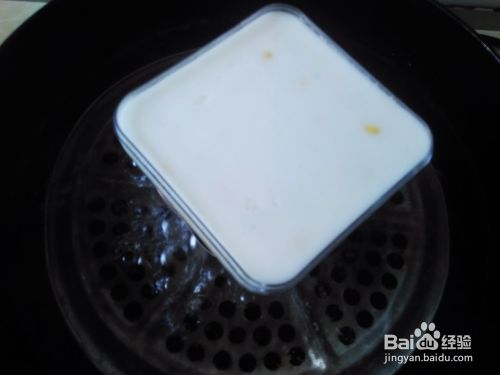 把一半的木薯淀粉糊倒到模具,然后放置水开的蒸锅里大火蒸6分钟。