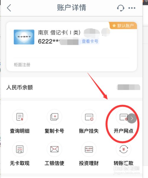 在“我的账户”中找到开户网点,点击进入,即可看到开户网点信息。