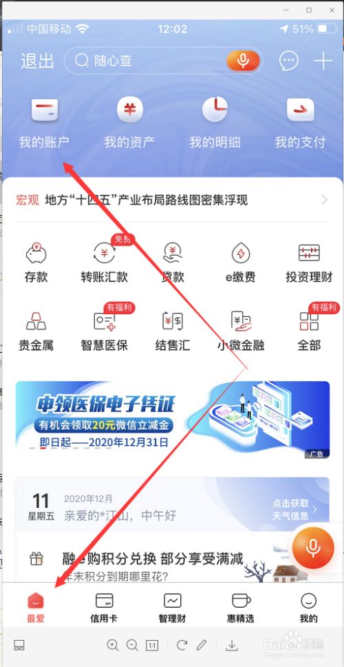 方法二:打开工商银行手机银行,登录app,在第一页中,找到我的账户,点击进入。