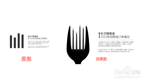 更改图表的颜色与叉子一致,右键点击图表置于顶层,调整图表和叉子的大小,将数据改为白色,就可以了,如图4