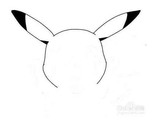 第一步,我们先画出皮卡丘的头部轮廓和两只耳朵。