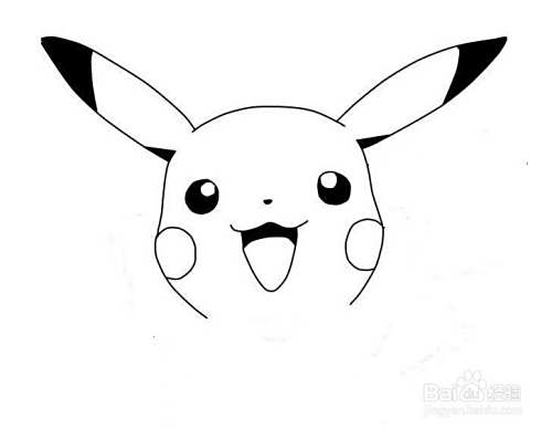 第二步,我们接着画出皮卡眼睛,嘴巴。