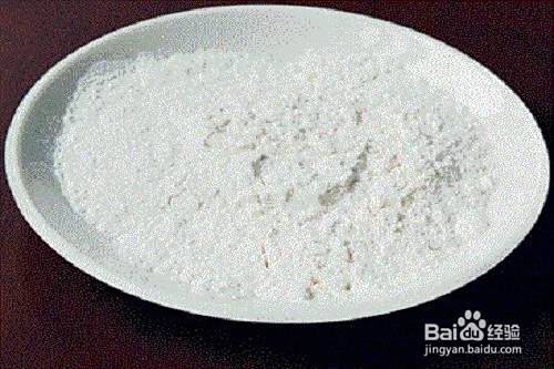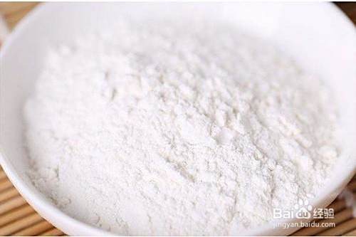 开小火,将糯米粉倒入锅中,用铲子简单炒一下。
