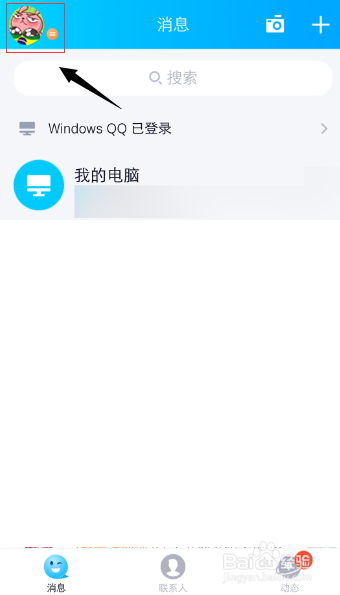 手机打开QQ,进入页面,点击自己的QQ头像。