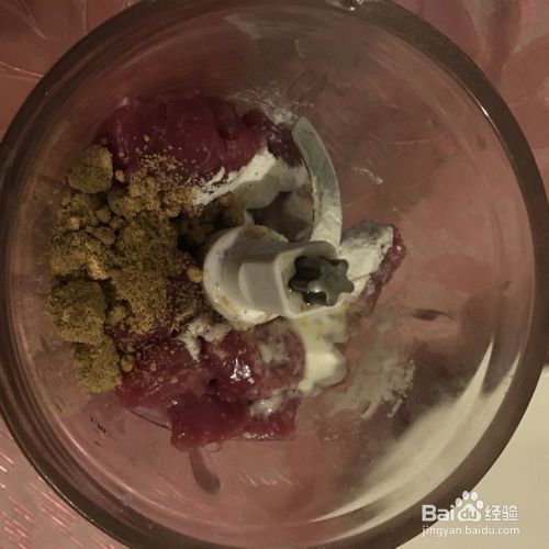然后将食材倒入搅肉机搅拌细腻