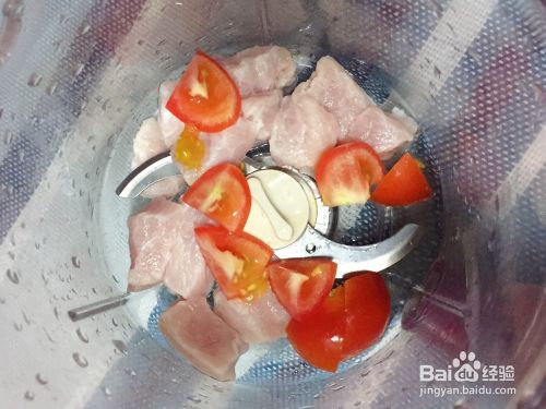 瘦肉与番茄洗净,切块,放入料理机中打碎。