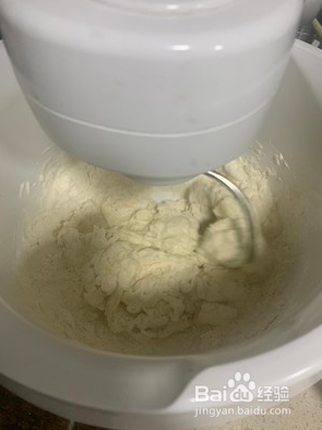 把面和水放入和面机,搅10分钟,放入盆中,盖上塑料膜,醒发20分钟