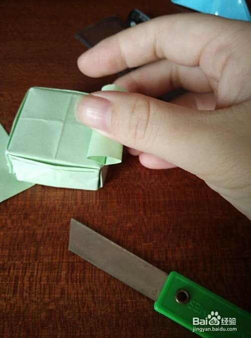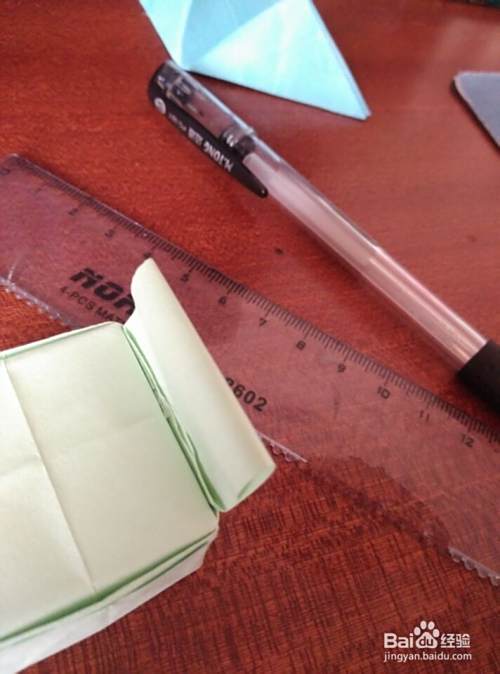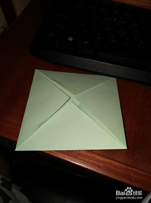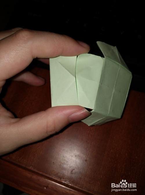 翻到背面,对折四个角里的中心线下端,往上推,然后压平。四个压完后,把四个角全部往里折,一个需要两个这样的正方形。具体操作请看下图。