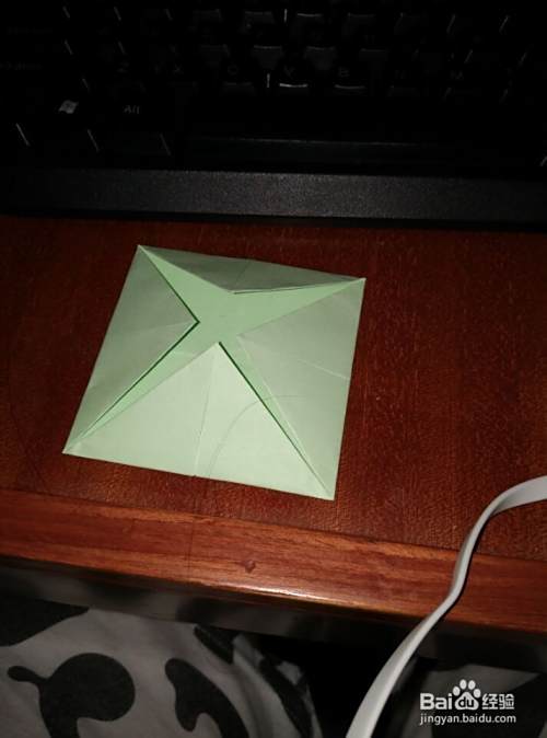 沿着中心十字,把4个角往里折。翻到背面继续往里折,继续翻到背面再折一次。
