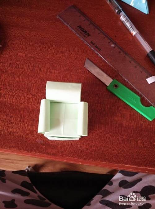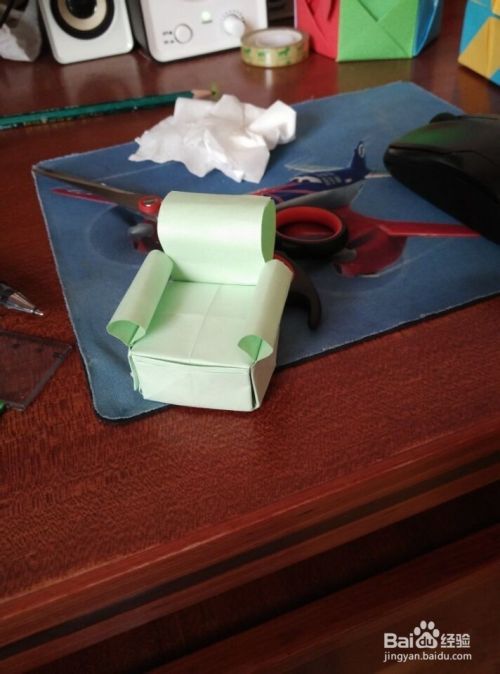 把剩余的两个长方形纸对折,往上折一小截,然后三角对其,插进沙发缝隙间即可。一个沙发就完成了。