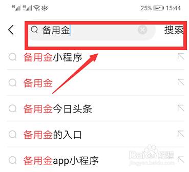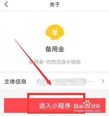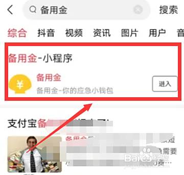 搜索结果界面,点击“备用金小程序”右侧“进入”。