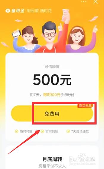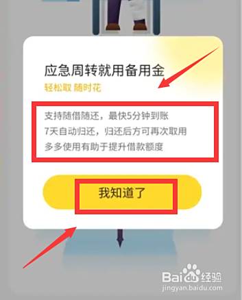 开启界面,提示应急周转就用备用金,点击“我知道了”。