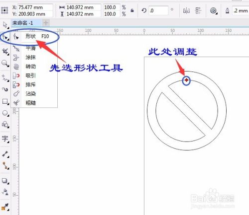 用“形状工具 F10”或按快捷键F10,鼠标对准“红色小菱形”调整。如果操作失误按快捷键Ctrl+Z撤消或工具栏上的撤消图标。如图: