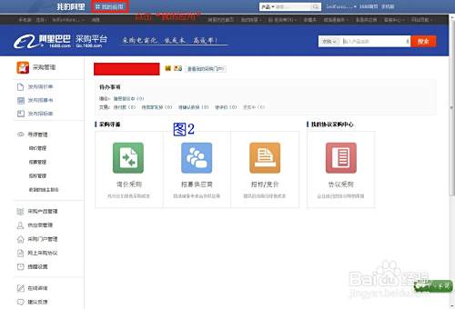 第二,阿里巴巴首页登录成功后,找到并点击“我的阿里”,进入我的阿里页面。如图1所示。