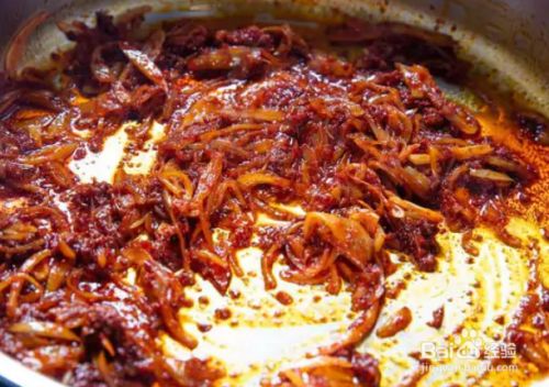 加入青葱和大蒜被染成红色,再煮 3 到 5 分钟。